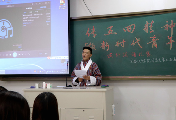 经过初赛的比拼,12名选手“杀”进决赛。大家紧扣主题,有的深情诉说了五四青年故事;有的分享了身边好青年的事迹;有的阐释了五四精神的深刻内涵;有的从平凡的小事中读懂新时代的五四精神。精彩的演讲充分展示了人文青年昂扬向上的精神风貌,真切表达了践行五四精神的信念和决心。经过激烈的角逐,16级秘书学的陈锐同学以富有时代气息,积极向上的原创演讲稿《青年向上,时代向前》,赢得了现场评委和观众的一致好评,那段:“青年向上,时代向前,青年人的梦想有多雄奇,青年人的奋斗有多努力,新时代的中国就有多么美丽!”的深情演讲,引起了现场同学们的强烈共鸣。16旅游管理(2)班的达瓦次仁同学身着藏民族服饰,深情表达了对祖国日益繁荣强盛的骄傲,荣获了第二名的好成绩。选手们自信、落落大方的台风,尽显了sjb世俱杯学子的风采和实力。