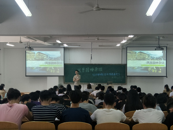 讲座期间,沈琪副所长结合自身教育工作经验,详谈风景园林行业前景,趣说专业特性,语调轻松幽默,现场气氛热烈。在与学生的互动中,沈琪副所长指出了风景园林专业的研究方向,列举了多种发展空间,鼓励我院学子认真学习,打牢基础,为深入研究做好准备。讲座结束前,沈琪副所长解答了部分同学的专业困惑和学业难题。