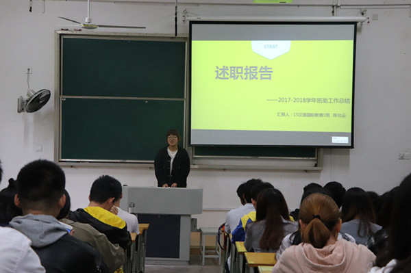 评审会上,15名辅导员助理结合精心制作的PPT,对过去一年里开展的各项工作进行了详细的述职。重点分为三个部分:新生入校前的联系沟通工作、入校报到相关工作以及新生适应工作。同时,大家也就工作中出现的问题一同进行了探讨和反思。在讲到成长和收获时,来自17古典文献学班辅导员助理徐雯丽同学说:“直到现在,自己已经养成了每天关注班级同学动态的习惯,哪个同学有比赛获奖,哪个同学参加了积极分子培训班,哪个同学在课业上遇到困难,我都了如指掌,也积极去寻求办法帮助需要那些有困难的同学。这个过程我自己觉得成长很多,收获满满!”在分享环节,大家也根据自身经验,现场解答了意向报名2018级新生辅导员助理同学的问题。述职结束后,童明明老师总结发言,她首先肯定了大家一年来辛苦的付出,并希望在接下来的工作中,新老辅导员助理间能加强交流,相互分享经验,积极开展班级工作,在团支部建设、活动开展等方面,做出更多积极的尝试和努力。