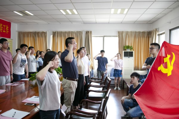 会上,鲁瑶老师还宣读了《致全体毕业班党员的一封信》,强调了转移组织关系的几个重要事项。最后,毕业生党员一起在党旗下重温了入党誓词。