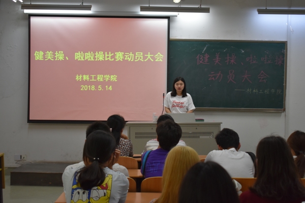2018年5月14日中午12:15,材料工程学院在2209教室举办了啦啦操、健美操动员大会。学院党总支副书记陈智慧、辅导员江赛德老师出席本次会议。
