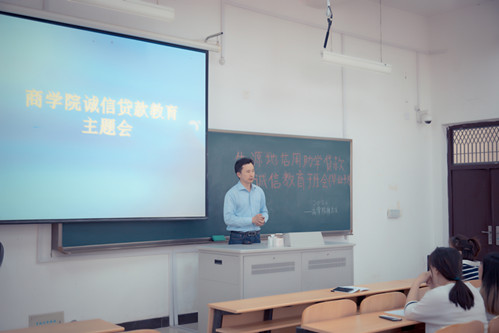 5月4日下午,商学院在5101教室召开毕业生生源地信用助学贷款诚信教育主题会。商学院党总支副书记朱骅、学工办分管资助和诚信教育工作辅导员沈慧慧和18届毕业班申请生源地信用助学贷款学生共同参会。
