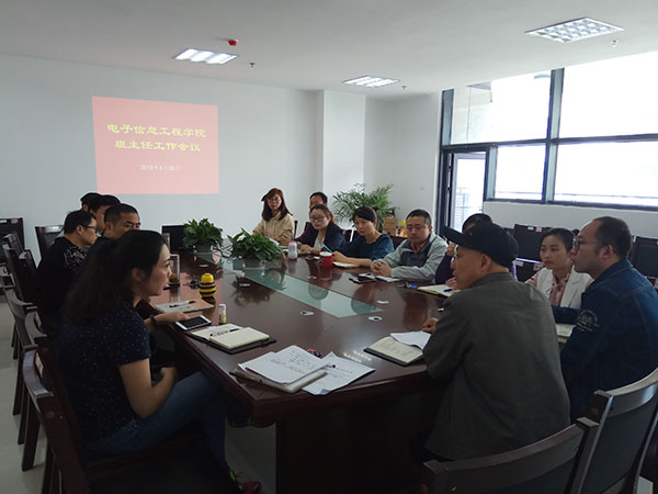 为加强对班主任的培训,提升班主任的工作能力,2018年4月28日上午,电子信息工程学院在科技楼4号楼410会议室召开了全体班主任工作会议。电子信息工程学院党总支副书记(主持工作)王正昱、学院全体班主任、辅导员参加了此次工作会议。