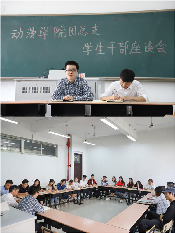 4月28日中午,动漫学院团总支在8102教室举办了学生干部专题座谈会。动漫学院党总支副书记、副院长匡才远,辅导员聂钰石老师及团总支学生会全体学生干部参加了本次活动。