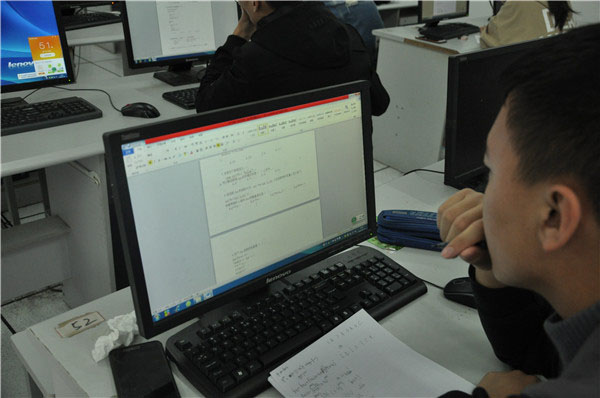 竞赛下午两点准时开赛,参赛同学都提前到场,调试软件,做好准备。在考试过程中,同学们仔细阅读赛题要求,把身心都投入到赛事当中,为了思考一道程序的过程和演算结果,他们需要进行大量的逻辑思考和稿纸演算,因此比赛一开始,整个赛场就充满了紧张的气息。所有人都在埋头分析演算,笔尖在稿纸上跳跃,目光在赛题和演算过程之间来回投递,就连他们的呼吸也都沉稳安静起来,所有人都进入了一种专注的状态。