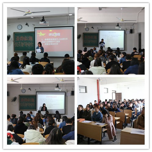 4月9日中午,动科学院团总支2017年度五四红旗团支部评审会在教学楼302举行。院党总支书记王昭诚、团总支书记黄淑婧、各年级辅导员以及来自全院19支团支部的60名团员代表出席大会并担任评委。大会由院团总支副书记张鉴楠同学主持。