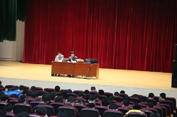 会议分三个阶段,征兵政策介绍,退役学生代表发言和征兵准备工作动员。李勇老师重点解析了大学生应征入伍的优惠政策,详细介绍了入伍的基本条件、征兵流程安排以及报名方式等。16级退役学生代表杜荣俊分享了他的兵营生活和成长感悟,通过军旅生活,他养成了良好的时间观念,节约的好品质。同时他也鼓励同学们积极响应国家号召,投身军营,献身国防。
