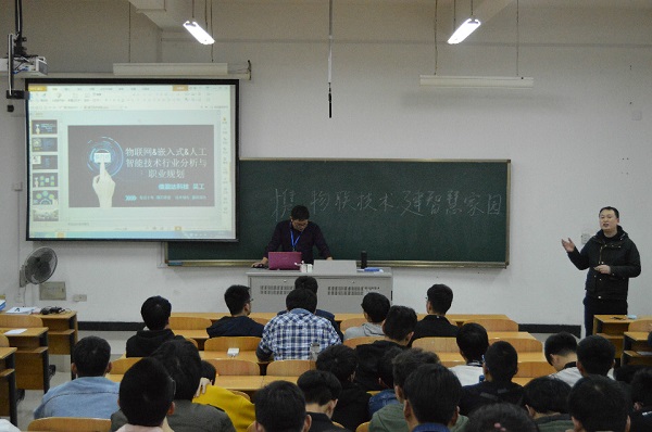 讲座开始,吴成宇经理首先表示了自己对这一专业的认同,再通过自身的实践经验向大家传授一些平时课堂中没有提及的知识点。然后围绕本次讲座的重点“物联网、智慧城市与建筑电气新技术的未来发展方向与就业”展开逐一分析。对于如何学好本专业以及这一专业的职业发展的问题,吴经理列举了很多案例,其专业独到的思考、深刻到位的分析让学生们更清晰了解了本专业在工作中实用性,明确了专业学习的方向。讲座末尾,吴经理还提供与本专业相关的仪器让有兴趣的同学上前共同研究与讨论。结束后不少学生向吴经理提出自身在学习过程中的难题和疑惑,吴经理逐一为同学做出回答。