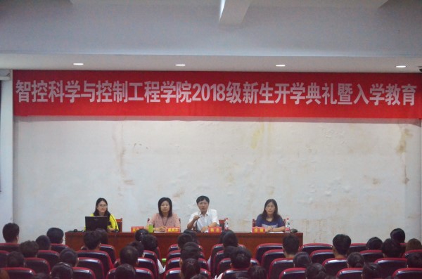 9月12日下午2:30,智控学院2018级新生开学典礼暨入学教育在大活116招就处报告厅召开。智控院党总支书记戴典芬,院长杨忠,副院长徐楠,各系主任、辅导员、新生班主任出席了本次大会,2018级225名新生聆听了本次大会,大会由段蕊老师主持。