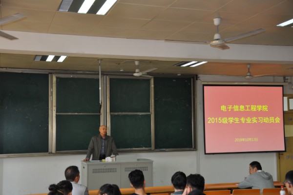 10月12日中午,电子信息工程学院在1232教室召开2015级学生专业实习动员会。院党总支副书记王正昱(主持工作)、副院长徐志国出席会议并发言,专业实习带队老师和15级学生参加会议。