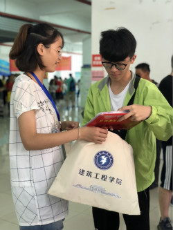 建筑工程学院志愿者高举学院标牌欢迎萌新们