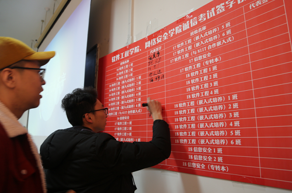 为进一步加强公平公正的考风考纪建设,营造积极向上的考试氛围,软件工程学院、网络安全学院于12月20日中午在1207教室举行了“诚信考试动员大会”。出席此次会议的有软件工程学院、网络安全学院党委副书记徐斌、全体辅导员及各班级班长、学习委员。