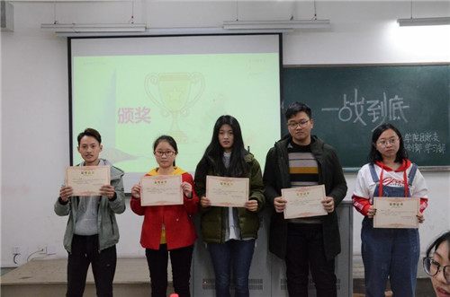 在主持人介绍出席人员和参赛队伍后,比赛正式开始。本次知识竞赛分为队伍抢答、个人抢答、“快马当先”问答等五个环节,观众互动环节格外激励在场观众踊跃投入其中。音频问答、风险抢答,所涉及范围上可即浩瀚宇宙,下可通古今中外;有风趣的问题,也有自然科学和人文地理。在经历一场激烈而精彩的才智较量、残酷的角逐后;一等奖由第八组成员获得,由此他们所在队伍也就取得了参加学校比赛的资格。最后,活动在颁奖仪式与主持人总结中圆满结束。