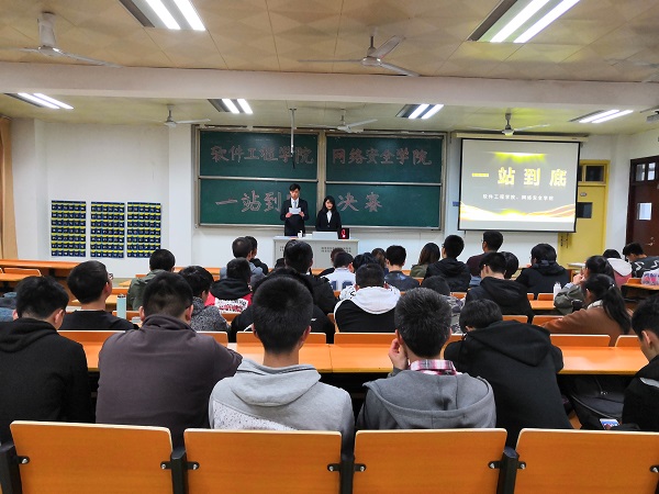 为丰富同学们的课余生活,营造良好的学习氛围,11月27日晚,软件工程学院、网络安全学院在1432教室举办了“一站到底”知识竞赛决赛。比赛邀请了学生党支部书记邵彦婷、辅导员杜文娟、学联副主席王滋繁、夏雨欣、穆文秀作为现场嘉宾。
