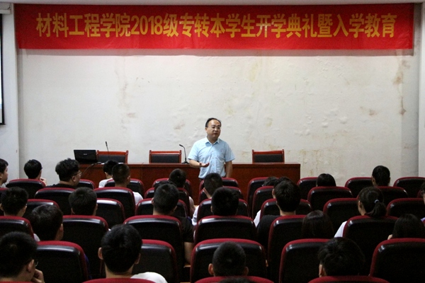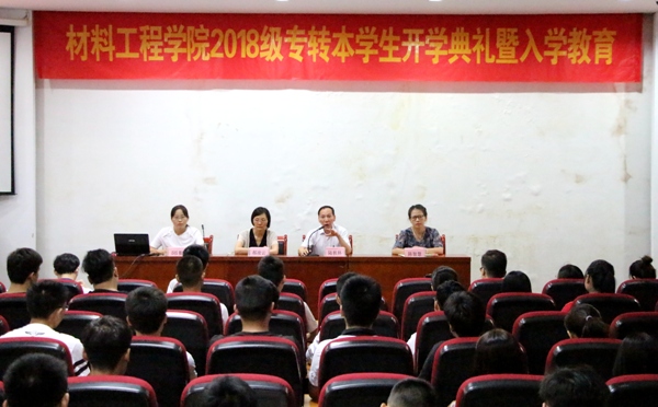 为让2018级专转本新生更加了解所学专业,树立正确的目标。2018年9月2日上午9点,材料工程学院在招就处报告厅开展2018级专转本新生开学典礼暨入学教育。材料工程学院党总支书记陆秋林、院长郝凌云、党总支副书记副书记陈智慧出席会议,材料系主任林青、材料系教研室主任王威、全体辅导员和18级专转本班班主任参加。