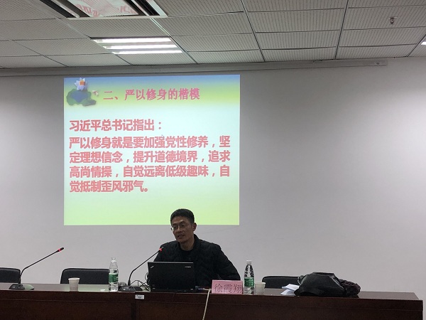徐霞翔主任从恽代英同志的“吾日三省吾身”讲起,带同学们领略了恽代英同志严以修身的楷模形象,并且结合时代背景讲述了恽代英同志在我国民族解放道路上一生不懈奋斗的故事,恽代英同志严以修身形象集中展现了雨花英烈精神。 通过本次讲座,使党员同志对雨花英烈精神有了更深、更广的认识,对党性修养有了更深层次的见解,明确了共产党员严以修身的重要性。同时也让大家更深刻地认识到了当代青年的时代使命。(审稿人:邵彦婷)