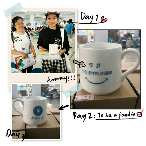 今年,暖心外院特意为每一个外院萌新们量身定做的惊喜小礼物-萌新的专属马克杯,送给最独特的你们!每一个杯子,正面印有校徽和“厚德兴业”的校训,蕴含了外院对你们的殷切希望!杯身的反面印着你们的名字和“外国语学院欢迎你”的字样,深刻表达了外院对你们的宠爱和欢迎!相信这个专属你们和外院的杯子会陪伴着你们在金科的成长。杯有量,而外院对你们之感情无量!