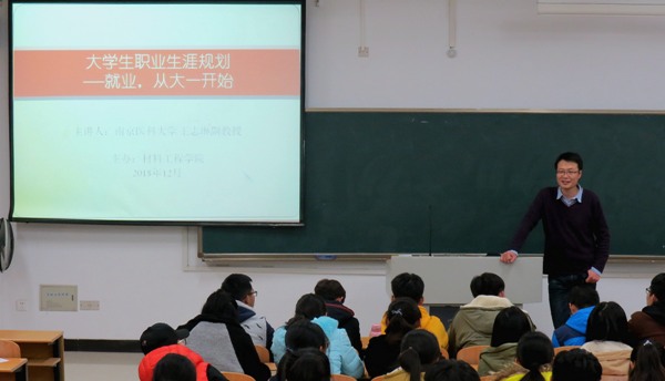 为帮助学生合理利用大学时光,进行正确的职业生涯规划,材料工程学院于12月6日在3204举办了大学生职业生涯规划讲座,本次讲座有幸请到了南京医科大学王志琳副教授为新生进行指导。