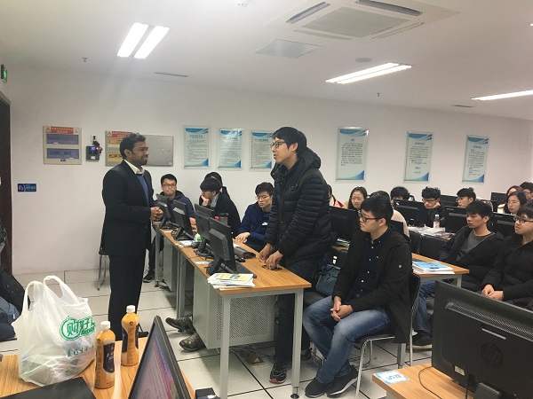 交流过程中,双方师生以物联网知识为基础,展开了深入的交流学习。来自江苏第二师范学院的Prashant老师首先为大家介绍并讲解了物联网相关知识,强调应用创新是物联网发展的核心。在理论学习之后,双方同学展开了热烈讨论,随后大家又通过实验的形式,进行实践操作,从实际的角度去理解物联网的简单构造,同学们收获颇丰。 本次活动促进了两校之间的交流合作,增进了两校之间的友谊,同时也锻炼了同学们的创新思维,增强了团队协作能力。(审稿人:邵彦婷)