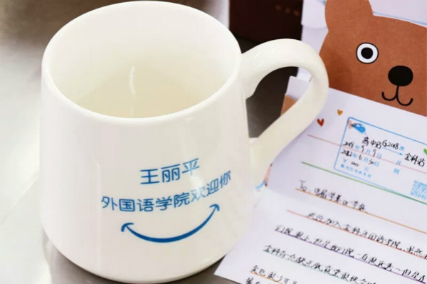 今年,暖心外院特意为每一个外院萌新们量身定做的惊喜小礼物-萌新的专属马克杯,送给最独特的你们!每一个杯子,正面印有校徽和“厚德兴业”的校训,蕴含了外院对你们的殷切希望!杯身的反面印着你们的名字和“外国语学院欢迎你”的字样,深刻表达了外院对你们的宠爱和欢迎!相信这个专属你们和外院的杯子会陪伴着你们在金科的成长。杯有量,而外院对你们之感情无量!