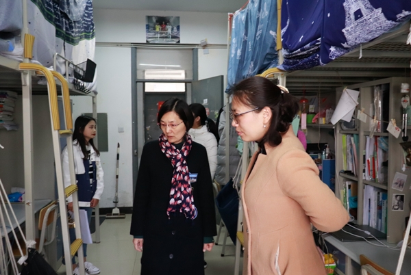 在宿管阿姨的带领下,检查组对宿舍的卫生和安全进行了细致的检查,重点检查了宿舍死角、阳台等地方。大部分宿舍卫生状况良好,各自物品摆放整齐,宿舍装饰精美,但也有少量寝室做的不够好,窗台灰尘较多,物品摆放杂乱,存在些许安全隐患。在院长和副书记提出不足后相关寝室已表示整改,总的来说情况良好。在检查过程中,郝院长与陈书记与同学们还做了亲切交流,关心同学们的日常生活和学习,提出了有关安全及卫生方面的建议,并且贴心地给每一个宿舍留下了安全便利贴。