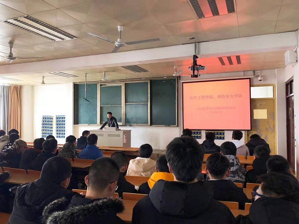 3月20日上午,软件工程学院、网络安全学院在教学楼1232教室举办2018级学生干部思想政治专题教育活动,院党委副书记徐斌做主题报告,100余名2018级学生干部参加。