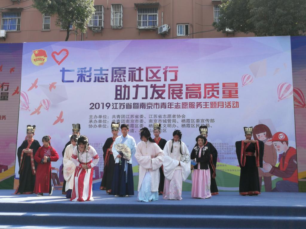 3月19日下午2点,全省联动开展的“七彩志愿社区行,助力发展高质量”志愿服务主题月活动在南京幕府山庄小区正式启动。团省委副书记潘文卿,南京团市委副书记石磊,省文明办志愿者工作指导处负责人祝筱炜,栖霞区委常委、宣传部部长储纲等出席了此次活动,来自机关、企事业单位、在宁高校、社会各行业40多支优秀志愿服务团队的志愿者、环保企业代表以及南京市民300多人参加了此次活动。人文学院汉韵传习社作为开场表演参加,人文学院礼仪队承担了此次活动的礼仪服务工作。