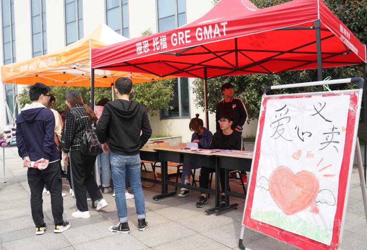 现场气氛十分热闹,尽管刮着大风也不能阻挡同学们的热情。不少路过的学生老师都慷慨解囊,买下了部分商品,纷纷献上了自己的爱心。本次义卖的的物品均由同学们捐赠,此外还有一些同学们手工制作的小物件,义卖所得款将全部用于给社区老人购置生活用品。