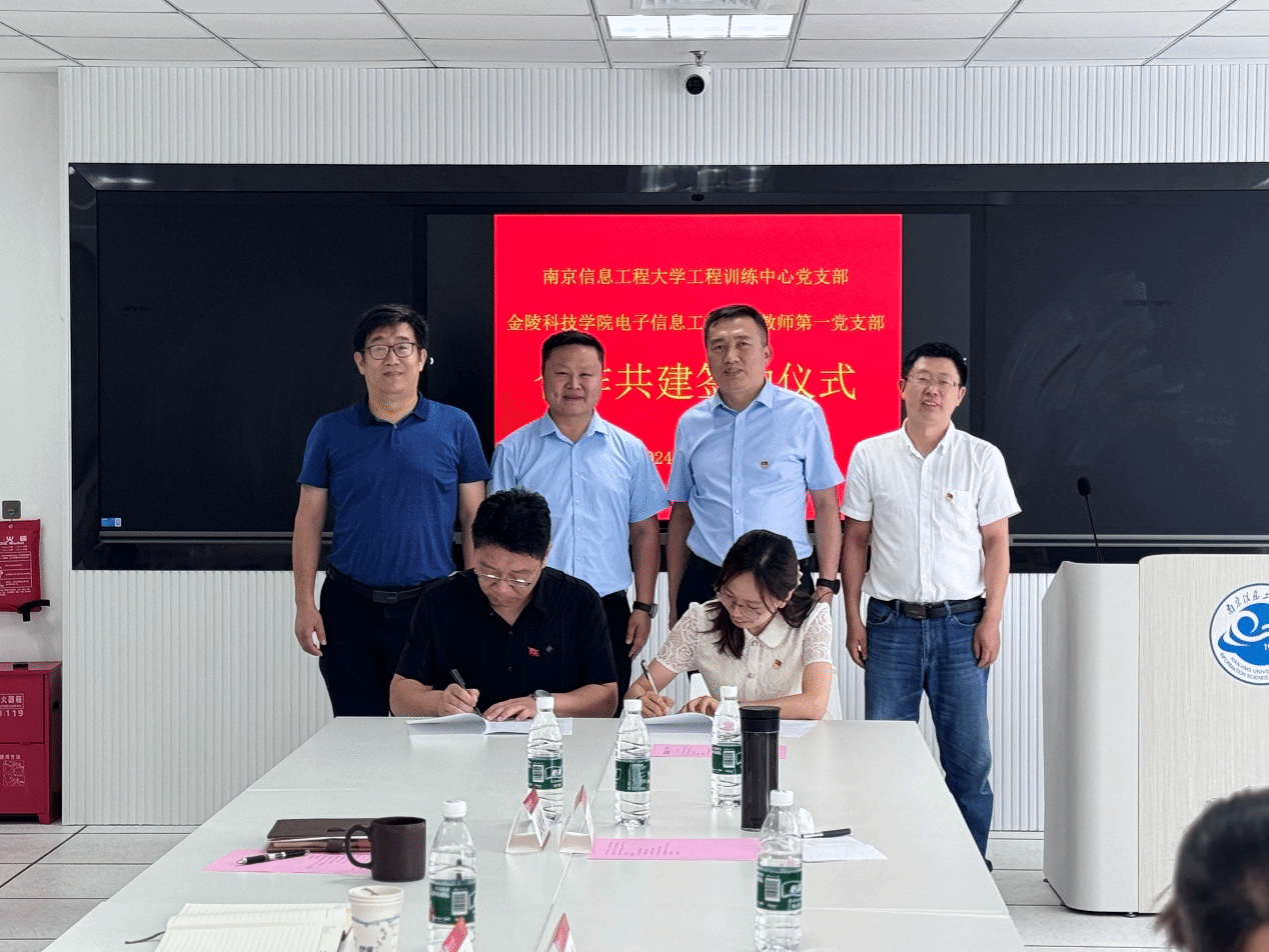 在学习交流会上,庄建军全面介绍了工程训练中心在实验室建设、课程建设和学科竞赛等方面的成绩和经验,电子信息工程学院院长胡国兵介绍了sjb世俱杯历史、学院专业设置和实验中心特色。与会教师代表就如何更好地培养学生创新能力、提升电子竞赛水平和创新教育模式改革等问题进行了深入交流。我院教师第一党支部书记陶永会与南京信息工程大学工程训练中心党支部书记张雅男签署了党支部合作共建协议,双方将在党建共建合作的基础上展开全面的密切合作。郭杨表示,南京信息工程大学始终秉持着开放办学、联合办学、特色办学的先进理念,希望通过党建共建能把共同的资源、共同的需求对接好,推动双方合作交流走实走深。