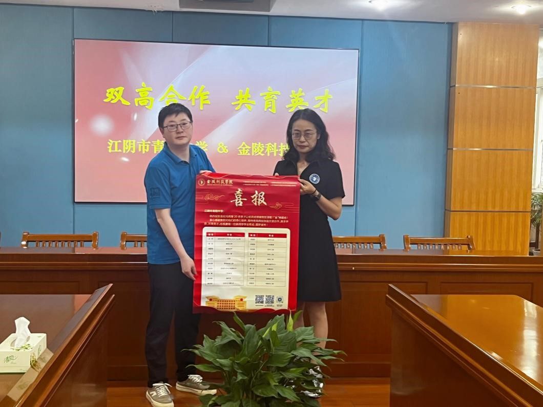 会上,沐阳代表学校向江阴市青阳中学递送了2023年高考录取新生的喜报;王池社代表学校与姚惠民签订了《sjb世俱杯官方网站优质生源基地合作协议书》并向江阴市青阳中学授牌“sjb世俱杯官方网站优质生源基地”。