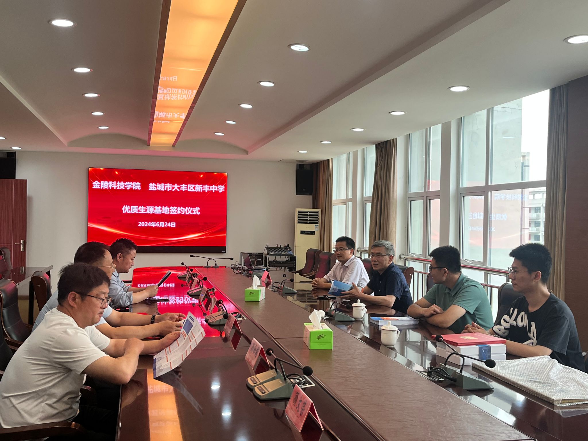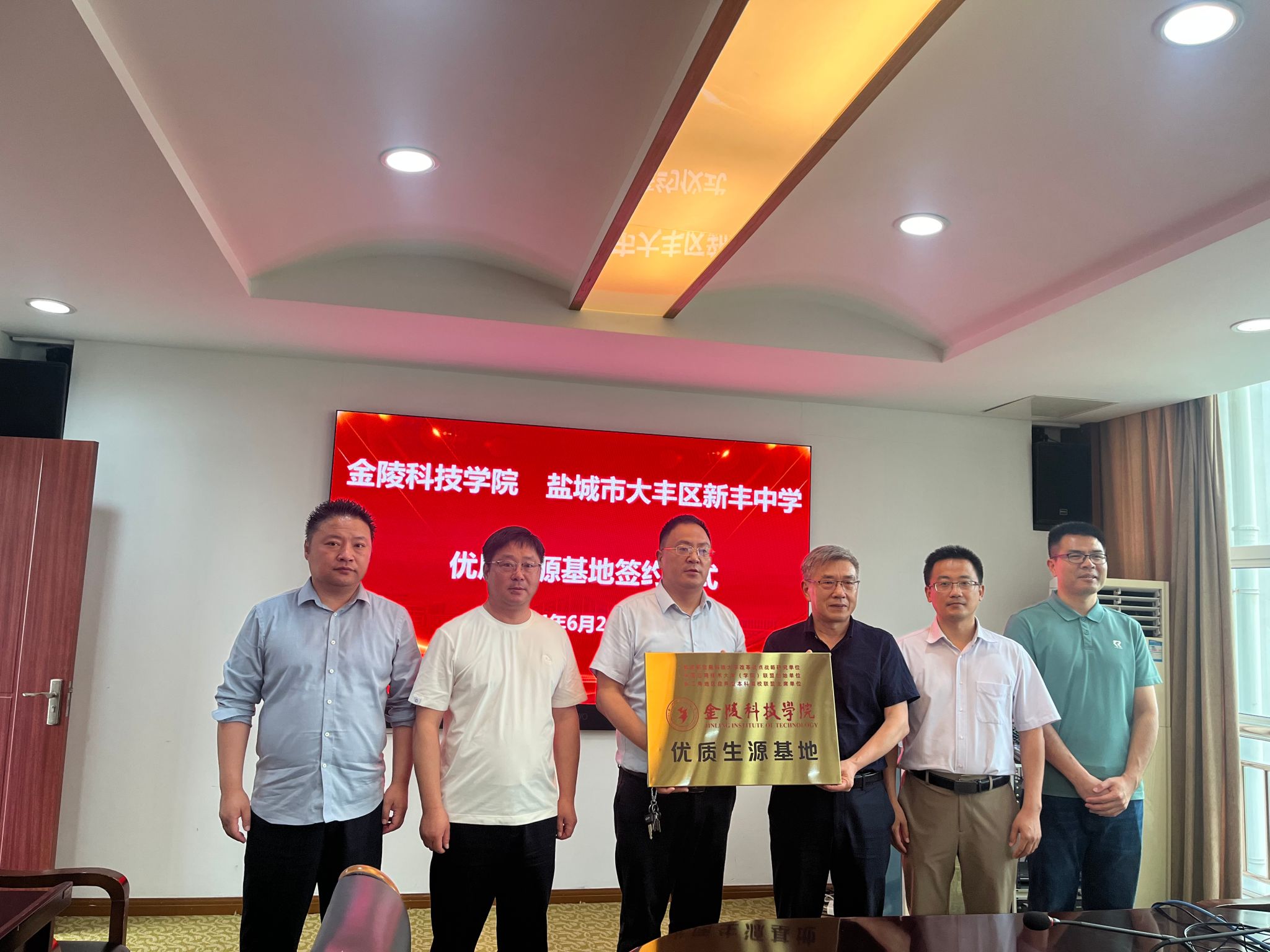 6月24日下午,sjb世俱杯与盐城市大丰区新丰中学举行优质生源基地签约挂牌仪式,网络安全学院党总支书记叶海青、副院长阎浩,盐城市大丰区新丰中学副校长陈小龙,副校长徐海兵等参加仪式。