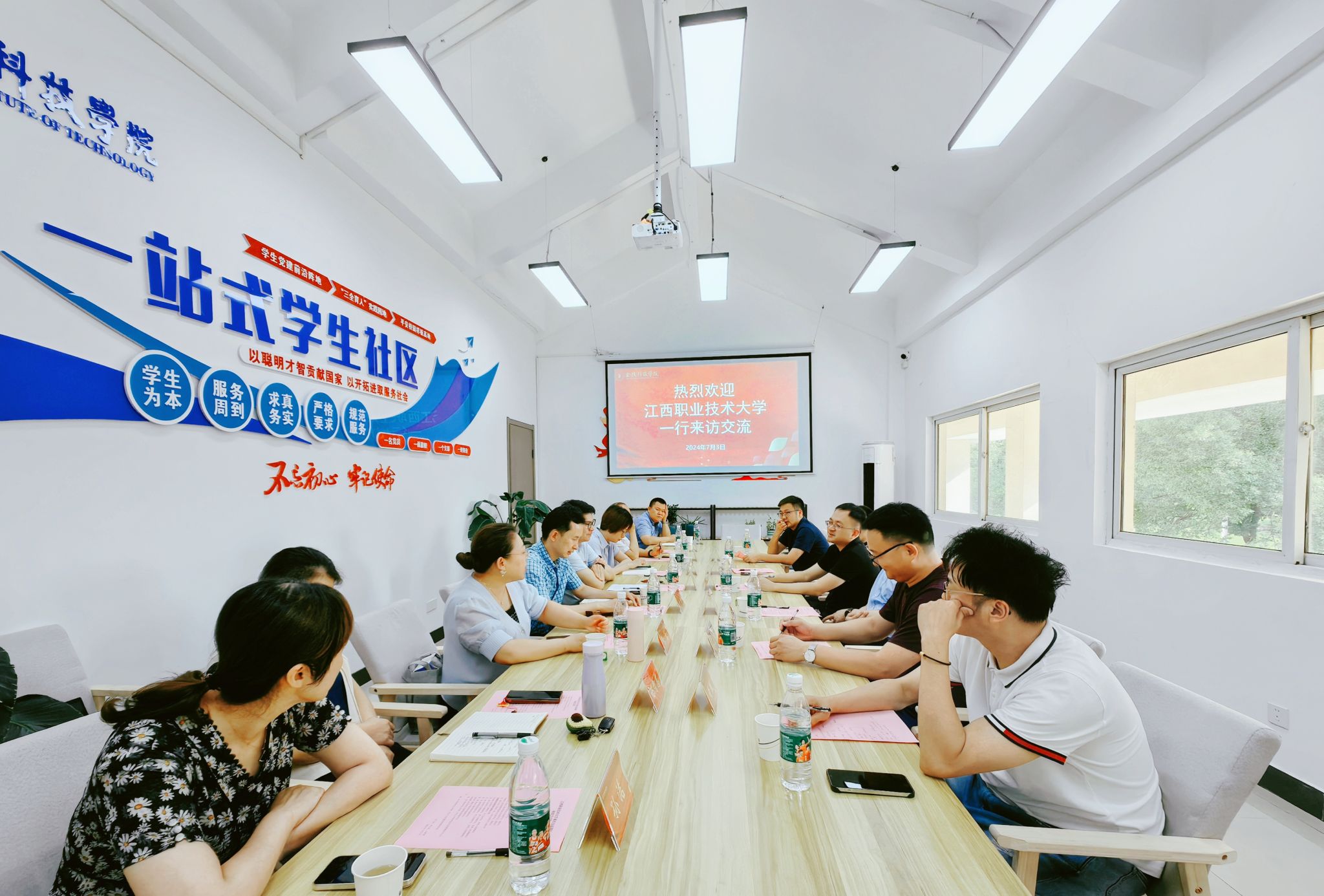 7月3日下午,江西职业技术大学学生工作处处长许静一行来sjb世俱杯调研交流。sjb世俱杯学生工作处处长汪如春热情接待,机电工程学院、建筑工程学院、电子信息工程学院分管学生工作副书记,以及学生工作处相关人员参加本次活动。