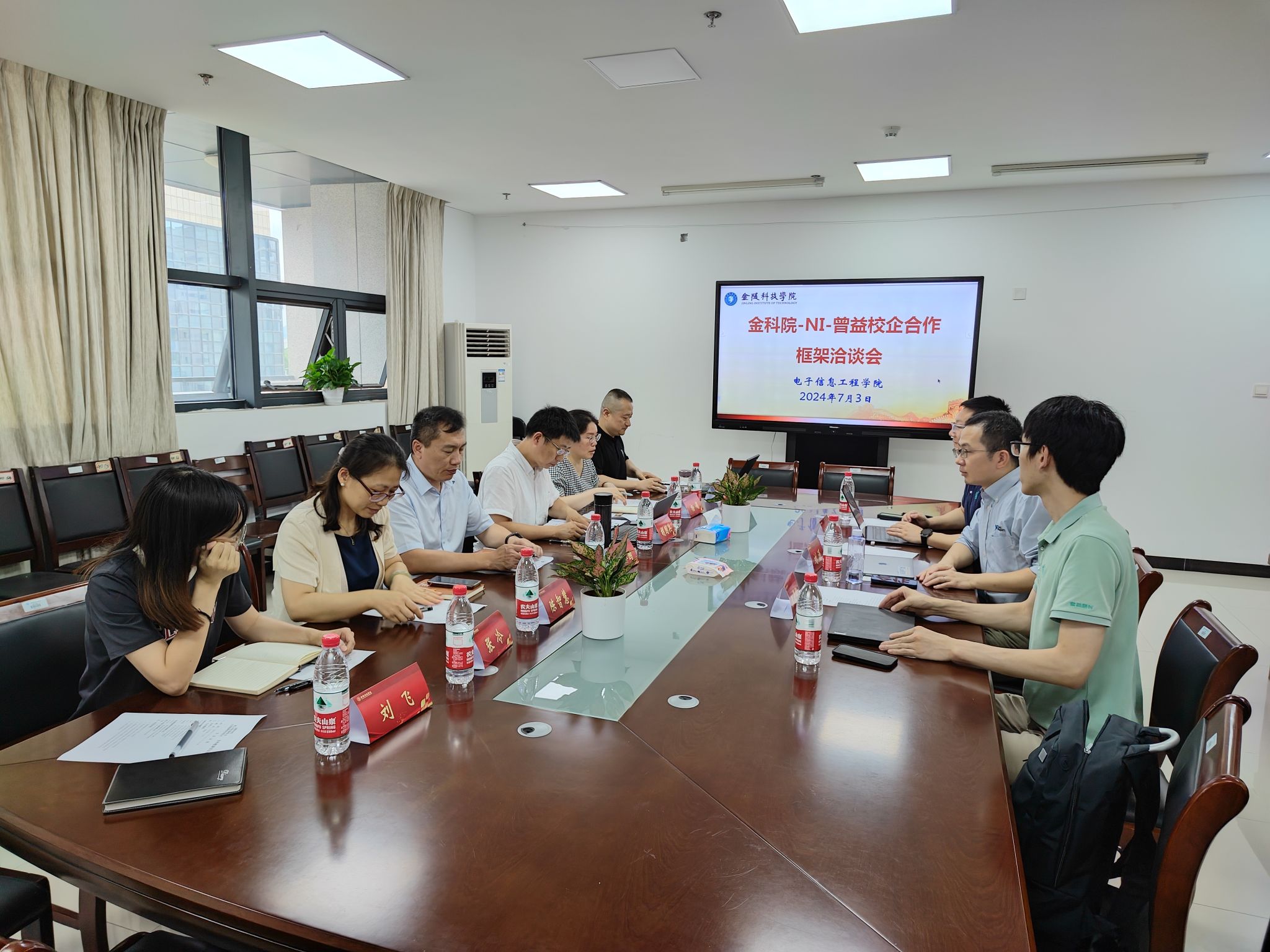 为进一步加强校企合作,深化应用型本科新工科专业建设,7月3日下午,美国国家仪器公司(NI)大中华区院校经理刘源、北京曾益慧创科技有限公司首席市场官刘晋东等一行应邀来sjb世俱杯进行校企合作洽谈。电子信息工程学院领导班子成员以及电子科学与技术系部分教师参加了合作洽谈,会议由电子信息工程学院副院长杨娟主持。