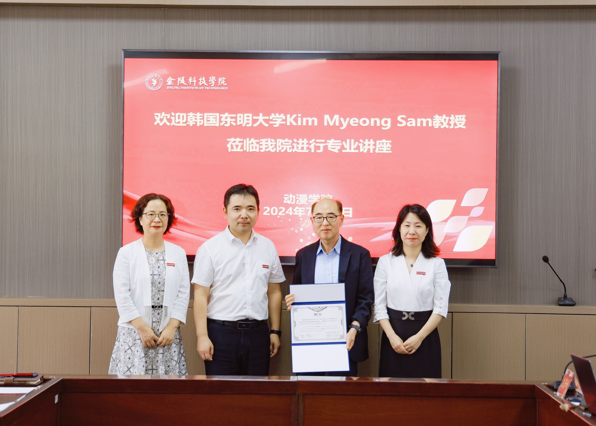 7月12日下午,韩国东明大学动画方向学科长Kim Myeong Sam教授与韩方助教范芳媛博士应邀在动漫学院7406会议室开展题为《艺术创作的人工智能》的讲座,国际合作与交流处处长戴维、动漫学院书记赵宁、动漫学院院长王贤波、动漫学院师生和动画领域的省内高校教师参加了本次活动。