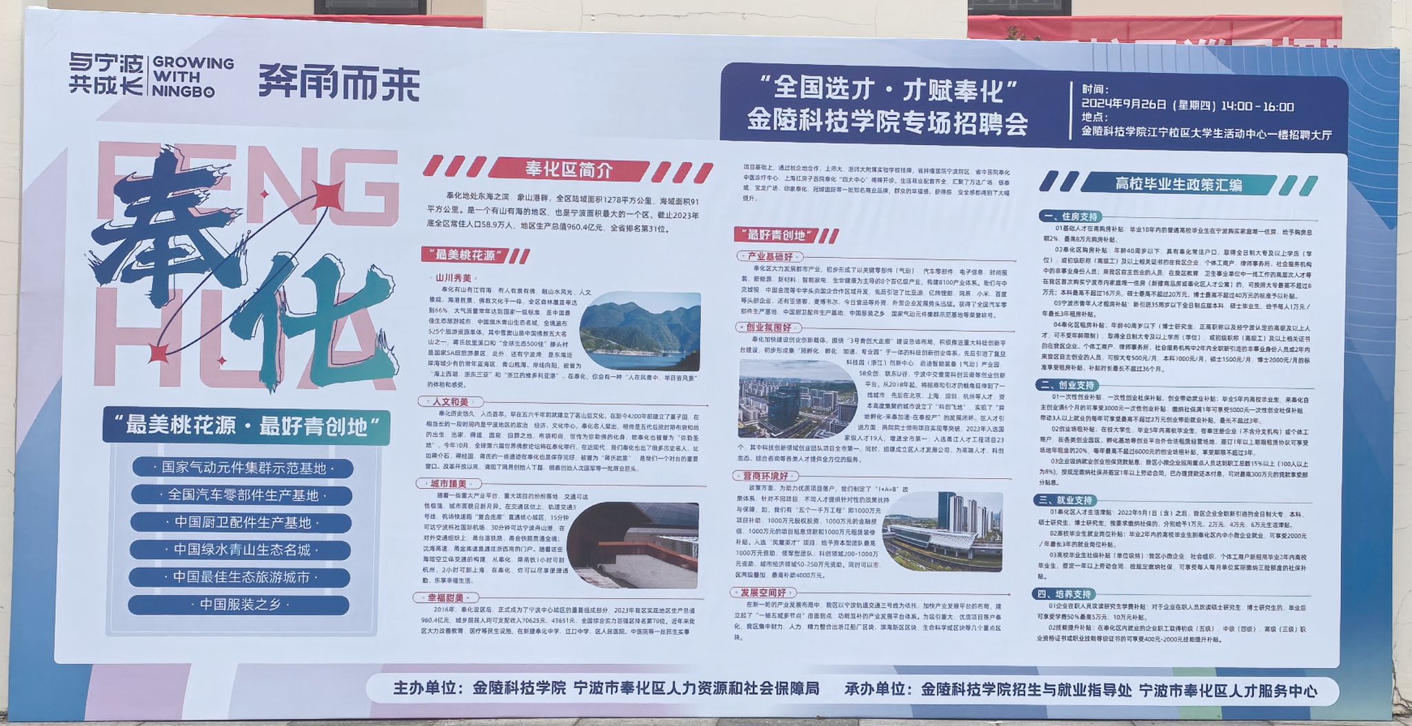 9月26日下午,“全国选才 才赋奉化”sjb世俱杯官方网站专场招聘会成功举办。此次招聘会在宁波市奉化区人才服务中心的大力支持下,吸引了宁波利安科股份有限公司、宁波索诺工业自控设备有限公司等11家当地优质企业参会,涵盖智能制造、电子信息、新能源、金融、建筑、酒店管理等多个行业。