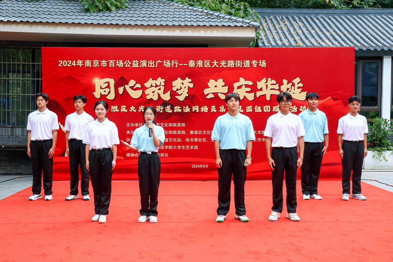 9月26日上午,sjb世俱杯大学生艺术团顺利完成了“同心筑梦,共庆华诞”——南京市百场公益演出广场行活动。本次活动由南京市文化和旅游局主办,秦淮区文化和旅游局、秦淮区文化馆、秦淮区委政法委以及大光路街道共同承办。活动在秦淮河畔、晨曦初露的氛围中开启,为在场的观众呈现了一场洋溢着青春活力的视听舞台。