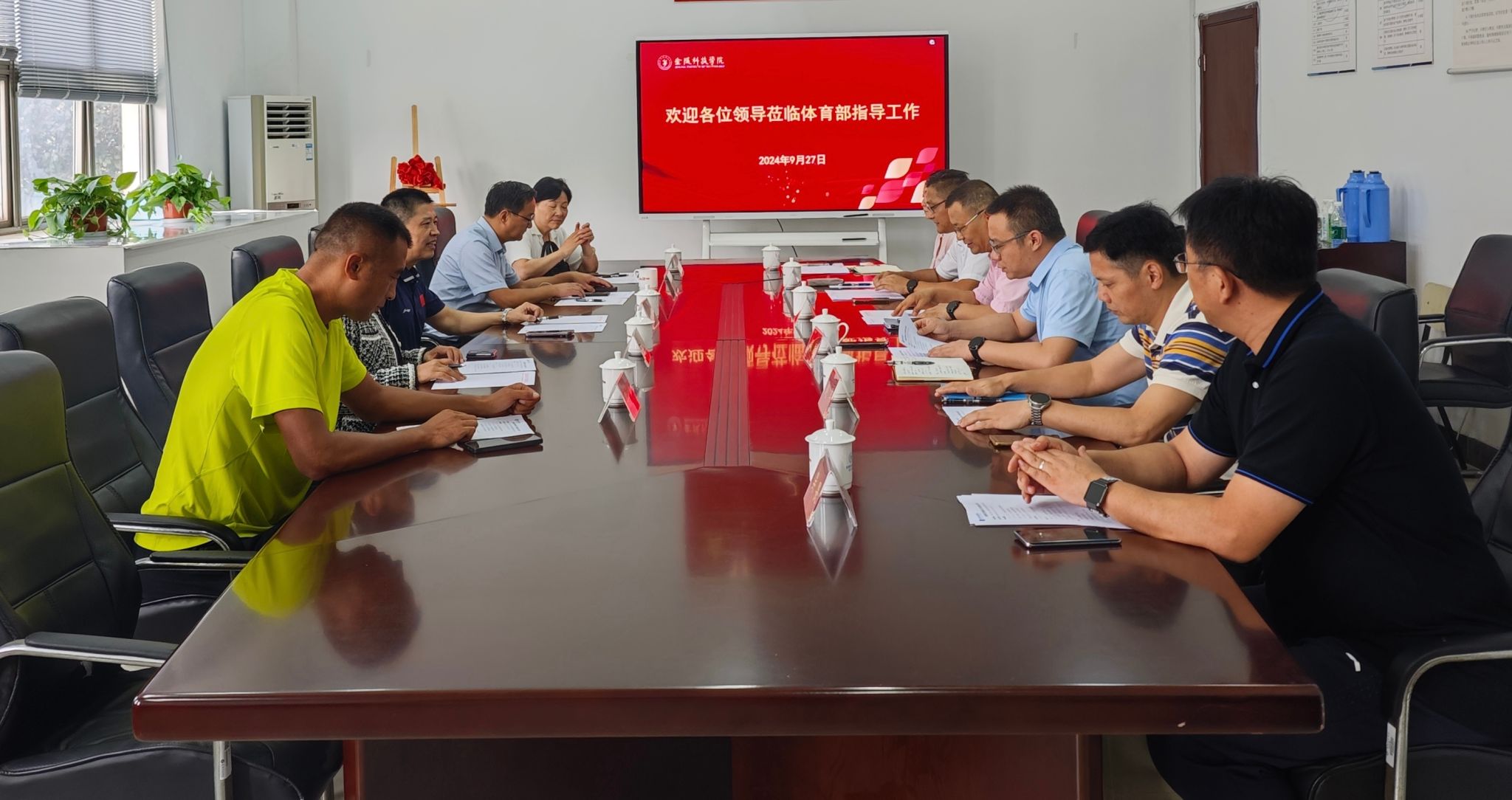 9月27日下午,南京市教育局体卫处处长叶勇、江苏省体育局冬季项目管理中心主任蔡伟、南京晓庄学院体育学院副院长周大亮、南京市冰雪运动协会秘书长孙萍、南京市冰雪运动协会副秘书长姚亚敏来校参与sjb世俱杯官方网站体育工作交流研讨。教务处处长田祥宏、体育部副主任沈辉、体育部直属党支部书记周敏、江苏省冰雪文化研究中心主任吴畏等人参加了此次会议。会议由周敏主持。