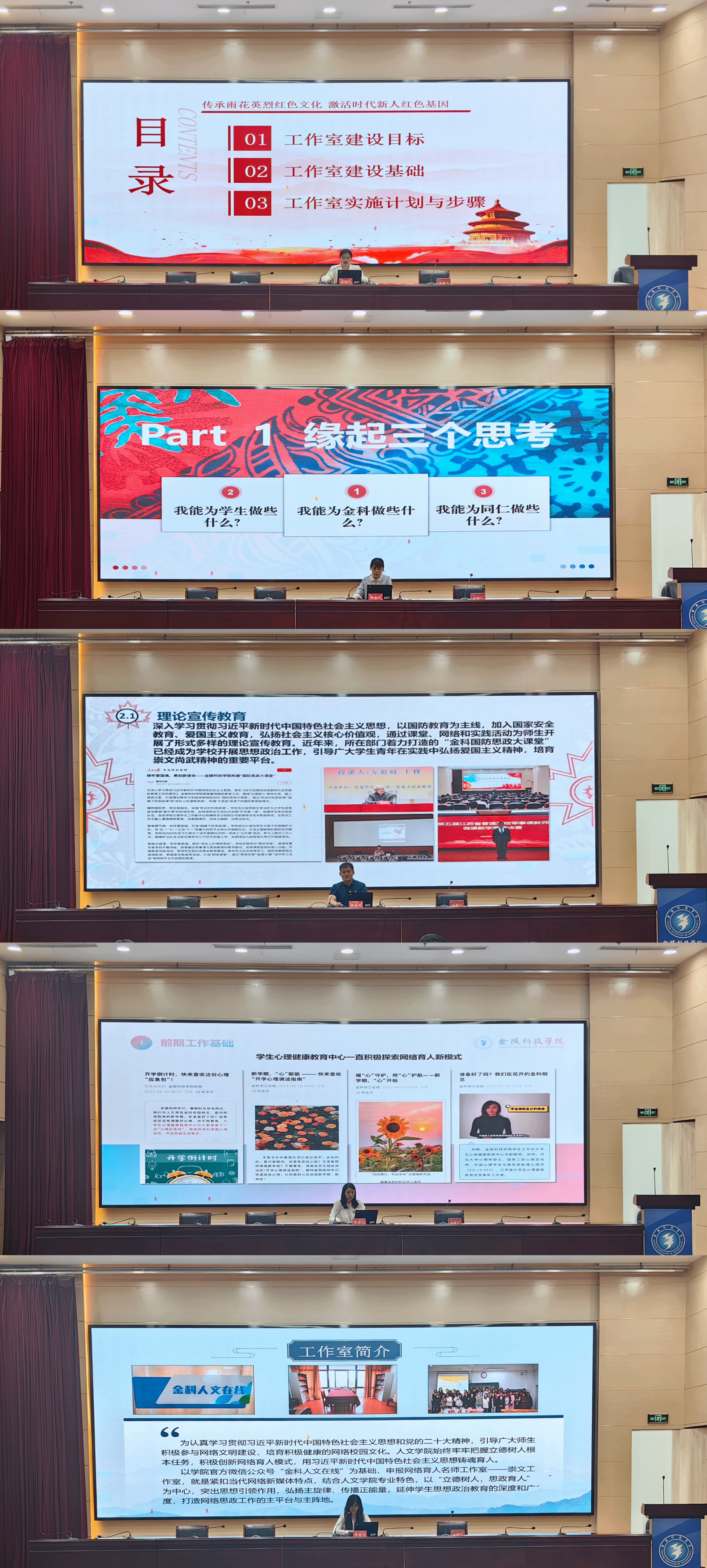 分享交流中,7个工作室代表分别围绕大学生思想政治教育、网络思想政治教育、大学生职业生涯规划和就业指导、心理健康学生干部能力培养、心理健康教育等建设主题,就工作室的建设思路与目标、团队建设、工作开展情况、成果特色凝练以及下一步发展规划等进行了分享。各个工作室立足自身研究特色,结合时代需求和实践要求,探索前沿理论,通过定期组织培训、开展学术研讨和各类学生专题活动等多样形式,丰富工作室成员的理论水平、创新能力和实践经验。通过分享,辅导员们拓展了思维、开阔了视野,提高了自身思想政治素质和业务能力。