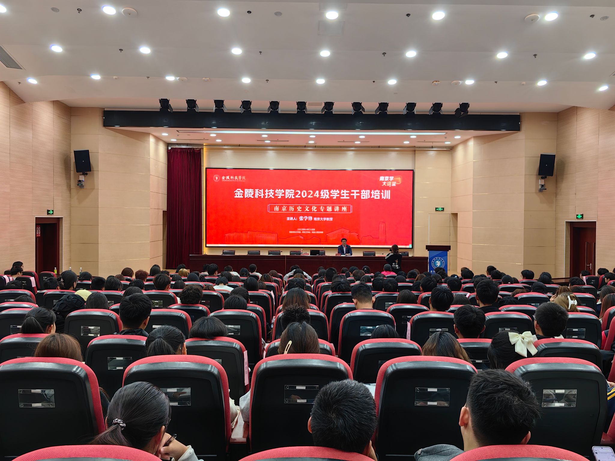 本次培训分为线下集中培训和线上培训。线下培训特邀南京学研究基地专家、南京大学考古文物系张学锋教授和河海大学心理健康教育中心主任、学生处副处长刘取芝教授分别为学生作南京历史文化专题讲座和心理健康专题讲座。同时,学生工作处处长汪如春作了理想信念教育专题讲座。线上培训依托国家行政学院平台开展,组织2024级学生干部参加了“为青春筑梦,为时代育新人”网络课程培训,培训时间将持续到11月底。
