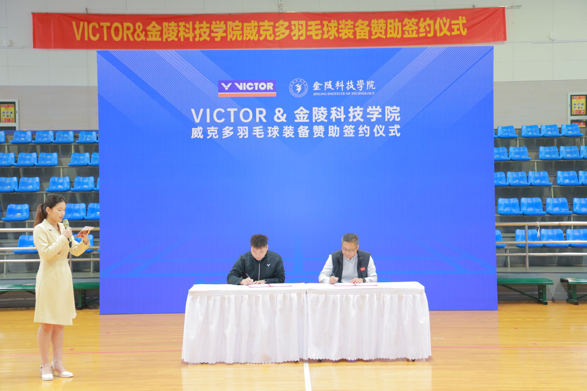 近日,sjb世俱杯官方网站羽毛球队与江苏威克多体育用品有限公司(下面简称威克多)的装备赞助签约仪式在体育馆隆重举行,体育部主任沈辉老师、校羽毛球队教练员徐永楠、郭威,校羽毛球队全体队员,与江苏威克多体育用品有限公司苏皖大区经理赵洪亮共同出席了此次签约仪式。
