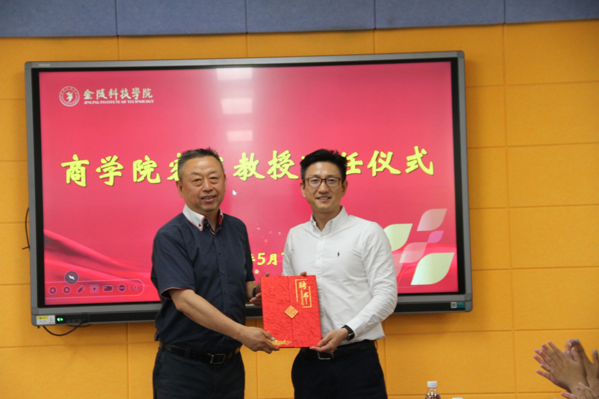 座谈会伊始,徐立岗以“三个纽带”阐释活动深意,他指出,本次活动既是对三十载师生情谊的温情回溯,更是构建“校友-母校-企业”协同育人共同体的创新实践,要着重发挥校友在应用型人才培养中的“活教材”作用。葛军从办学特色切入,指出商科教育已进入“数智化+产教融合”新阶段,期待通过校友的实战经验反哺课堂教学,助力学生突破“理论强实践弱”的就业瓶颈。座谈会现场,刘磊向吴劲松颁发客座教授聘书。