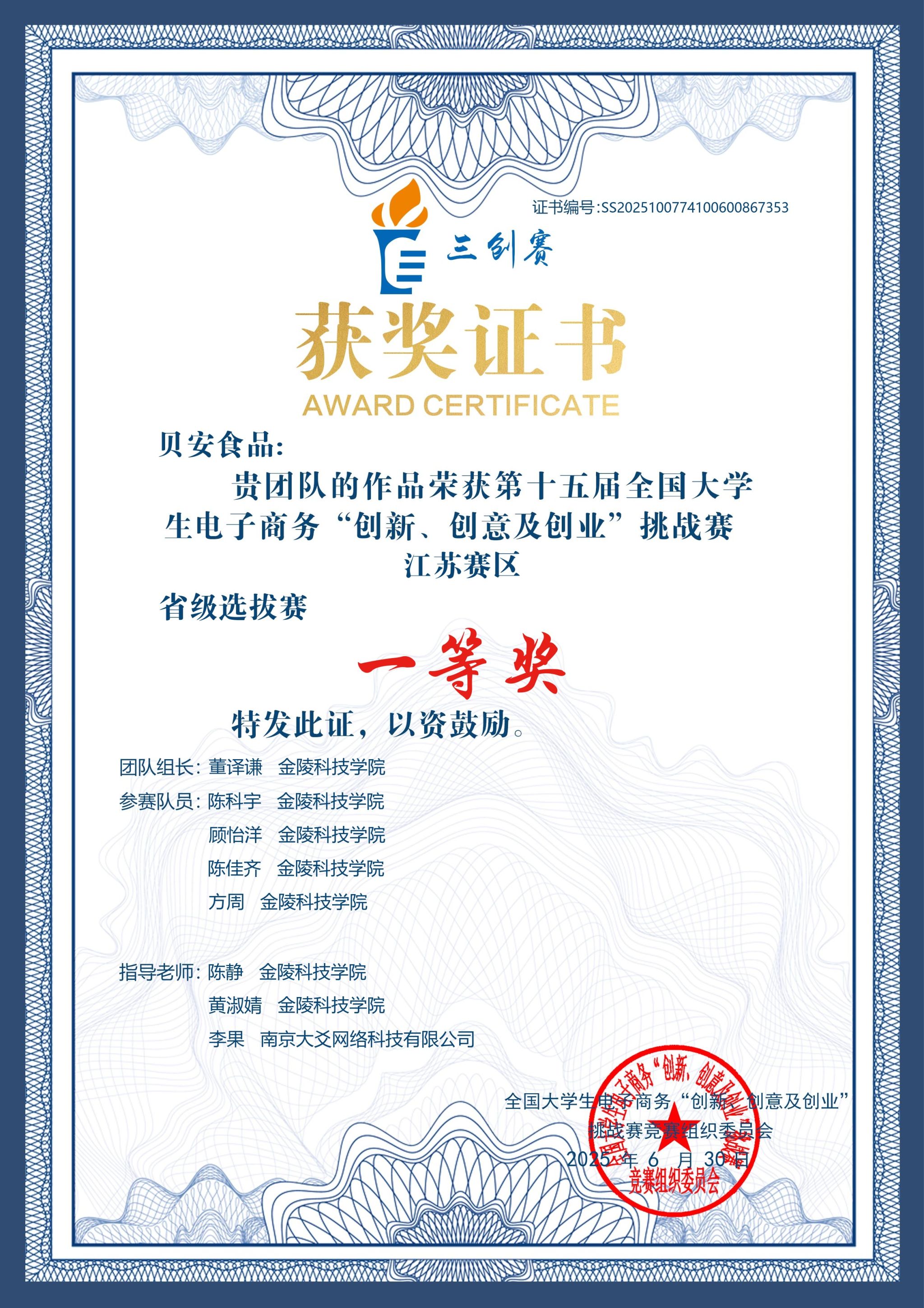 近日,第十五届全国大学生电子商务“创新、创意及创业”挑战赛圆满落幕。sjb世俱杯动物科学与食品工程学院黄淑婧、陈静等老师指导的“贝安食品”学生团队,凭借项目《猪事顺意——贝安食品纯净猪肉销售平台》脱颖而出,荣获江苏赛区一等奖。