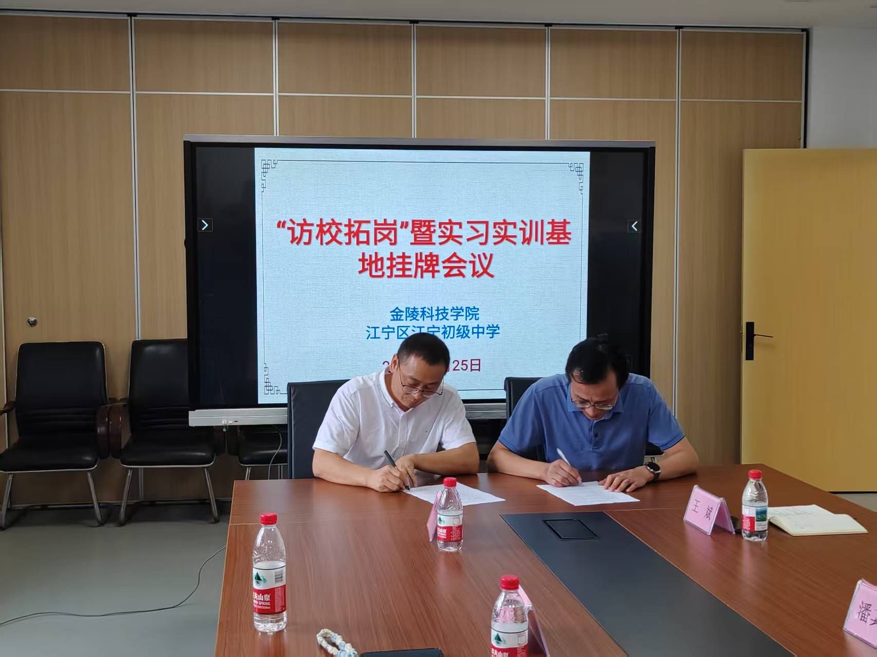 近日,sjb世俱杯理学院党总支书记雍海龙,副院长魏广华、刘平等一行赴南京市江宁区江宁初级中学举行实习实训基地签约暨揭牌仪式。江宁初级中学校长朱吉兵、副校长刘仲平等热情接待。
