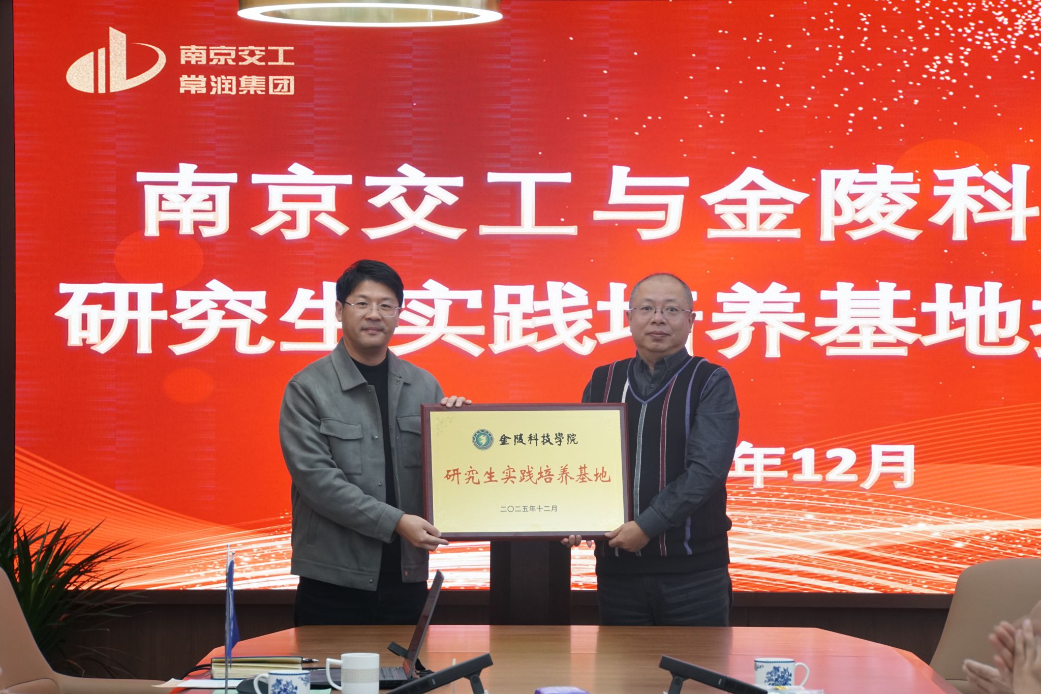 徐军深情回顾了求学岁月,感念师恩、难忘同窗。他表示,母校的培养不仅赋予自己专业知识,更塑造了他踏实严谨、勇于担当的品格,为日后事业发展奠定了坚实基础。欢迎更多金科学子加入南京交工。谢久田介绍了公司情况和企业对人才的要求,期待通过资源共享、平台共建等实现校企共赢。孙晓俊表示校企合作是推动行业进步、服务地方发展的重要途径,南京交工将全力支持合作项目落地,为双方科研合作和学生实习就业提供坚实平台。