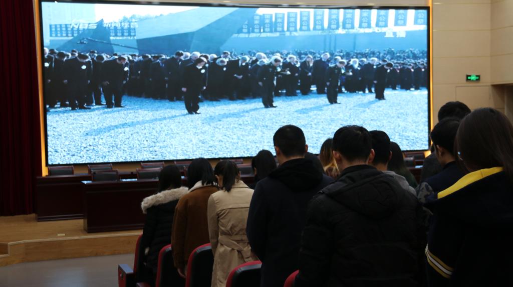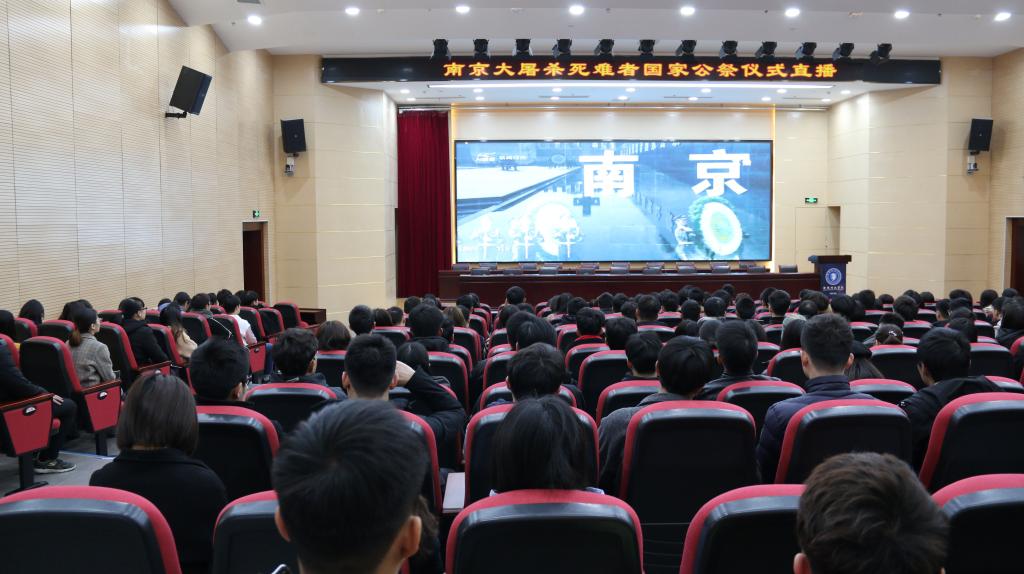 为了缅怀南京大屠杀的无辜死难者,以历史警醒、激励当代大学生勿忘国耻、珍爱和平,12月13日上午,sjb世俱杯在江宁校区科技楼报告厅组织师生收看南京大屠杀死难者国家公祭仪式视频直播。校党委学生工作部部长周骏、商学院副书记朱骅与两百余名学生和辅导员代表参加了本次活动,沉痛悼念遇难同胞。