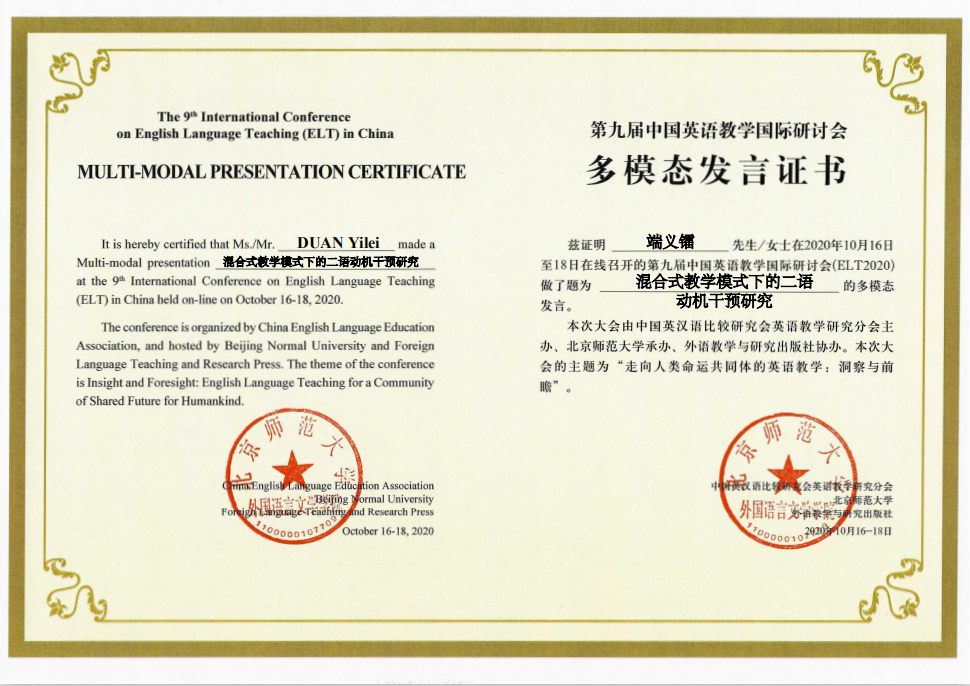 10月16—18日,由中国英汉语比较研究会英语教学研究分会主办、北京师范大学外国语言文学学院承办、外语教学与研究出版社协办的第九届中国英语教学国际研讨会在线上成功举行。来自国内外高校的1800余位专家、学者围绕会议主题“走向人类命运共同体的英语教学:洞察与前瞻”展开了深入交流和探讨。sjb世俱杯外国语学院端义镭老师受邀在研讨会上发言。