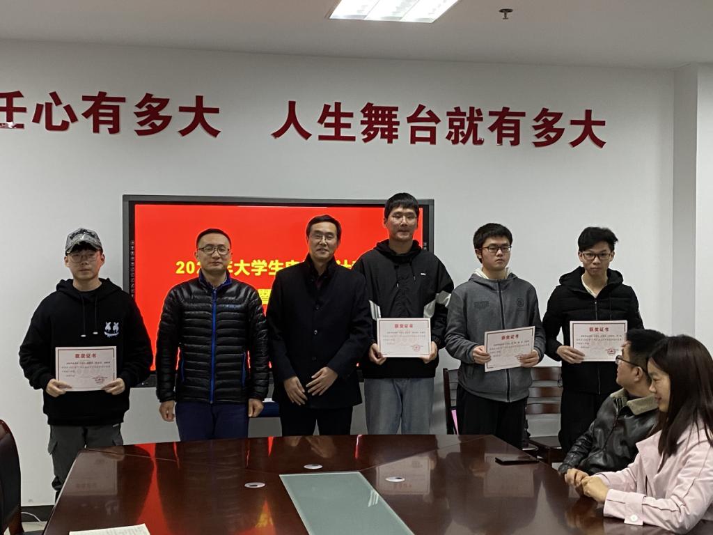 徐志国介绍了本次竞赛的总体情况。我院共有9个队伍27名学生参加了比赛,经过4天3夜的艰苦奋战及现场测试答辩环节,共获得江苏省一等奖1项,江苏省二等奖4项。王昭诚宣读了2020年江苏省大学生电子设计竞赛我院获奖学生名单和优秀指导老师名单,学院主要负责人为获奖的学生和老师代表颁奖。陈正宇作总结发言,对师生的辛苦付出充分肯定,对竞赛取得的成绩给予了高度评价,希望我院同学能在今后的学科竞赛中继续挖掘潜能、展现自我、再创辉煌。