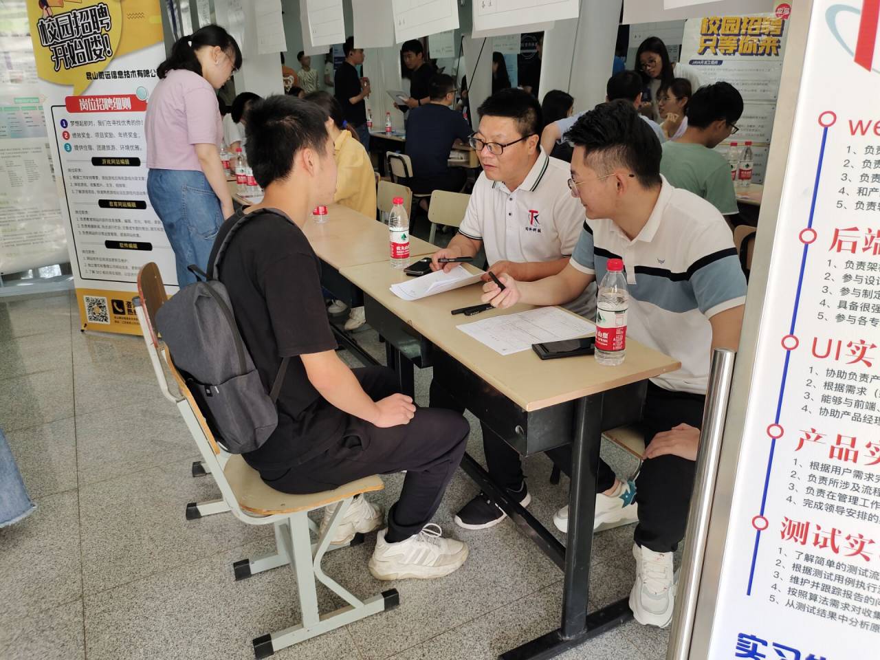 双选会共有28家优质企业,超过300个岗实习职位,学院同学带着自己的简历跃跃欲试,积极参加招聘。招聘人员与同学们就专业要求、实习期与工作岗位等方面积极沟通,同学们也在沟通中找准了自己的就业方向,向心仪企业投出简历。