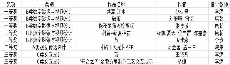 近日,第九届全国高校数字艺术设计大赛(未来设计师NCDA大赛)获奖名单揭晓,动漫学院数字媒体艺术专业学生在本次大赛中获得优异成绩,斩获B类数字影像与视频设计类一等奖三项、B类数字影像与视频设计类三等奖两项、C类交互设计三等奖两项、A类视觉传达设计三等奖一项,李潇和唐朝两位教师获得“优秀指导教师”奖。