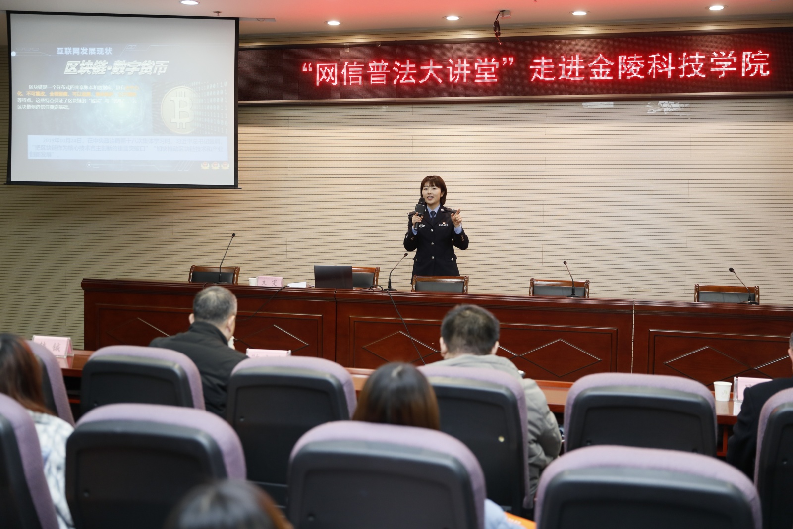为进一步推动全市法治工作深入开展,提升网信普法水平,助推全市网络综合治理体系建设,12月27日下午,南京“网信普法大讲堂”走进sjb世俱杯,引导青年学生文明上网、安全上网。南京市互联网信息办公室网络信息管理执法处处长方亚东、一级主任科员杨东辉,南京市委机关刊物《金陵瞭望》副总编陈永进,人文学院党委书记吴轶军,副书记韩铖参加了本次活动。本次活动进行图片直播,逾7000名网友在线同步接受了普法教育。